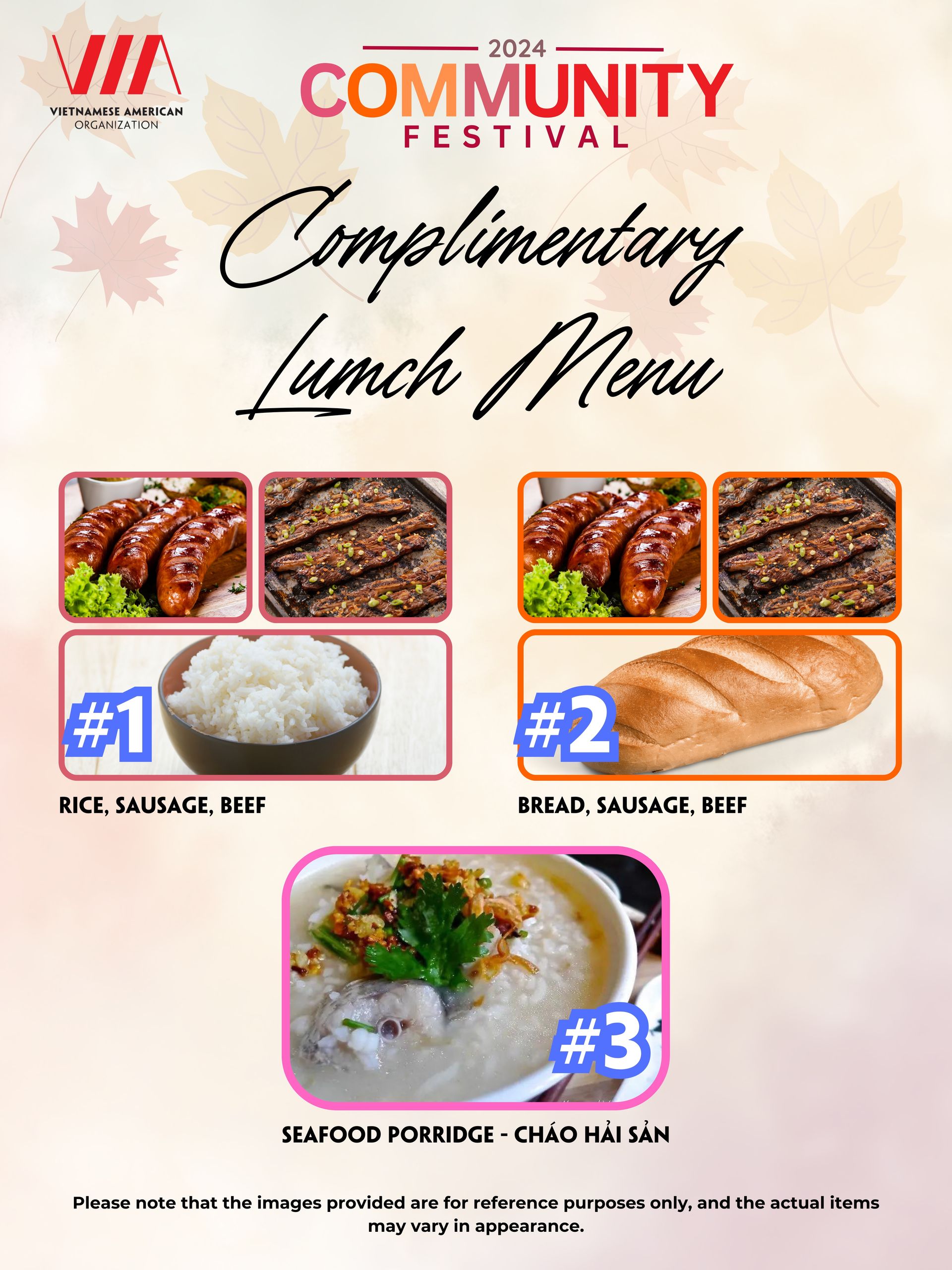 - Chúng tôi khuyến khích mọi người đến sớ để có được phiếu ăn. Ban tổ chức sẽ nhắm tới phục vụ 1000 phần ăn, nhưng lúc nào cũng muốn phục vụ tất cả mọi người. Nếu chúng tôi hết thức ăn, quý vị có thể mua ủng hộ các món ăn nhẹ khác.