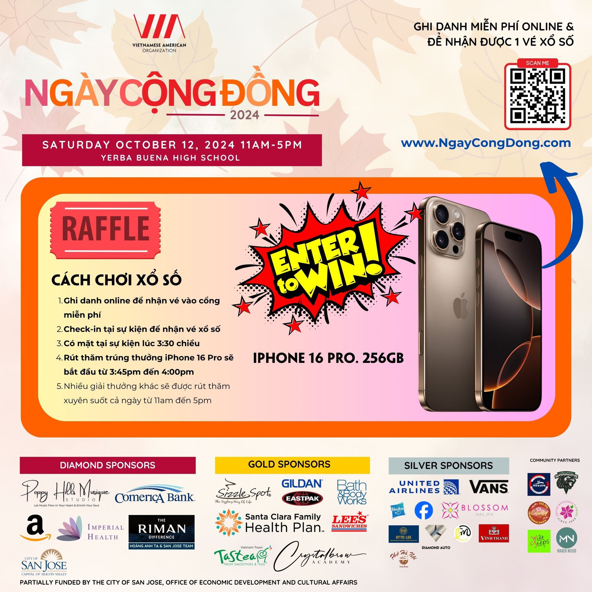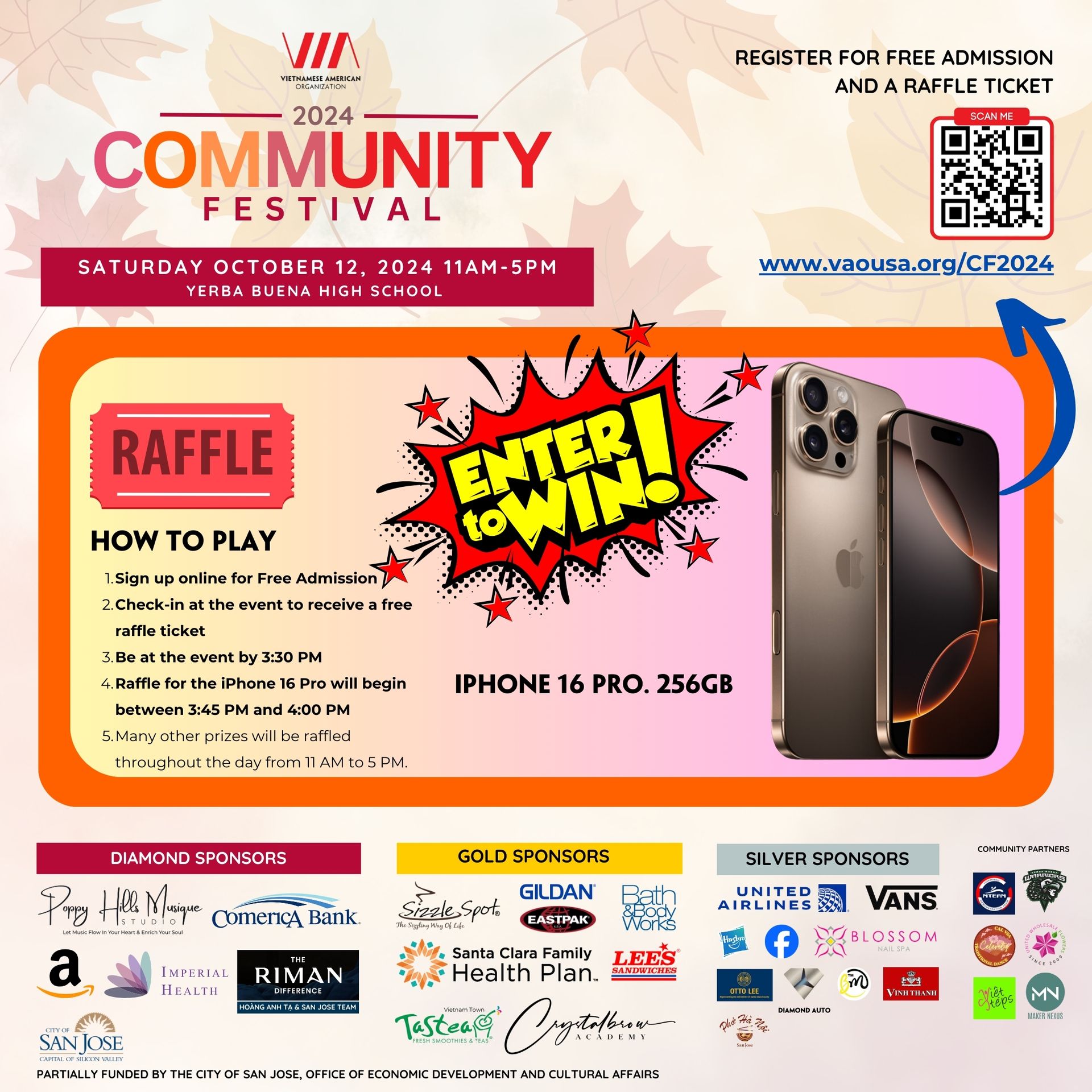 - The iPhone 16 Pro raffle will begin at 3:45-4:00 PM on the indoor stage. You must be present to win the iPhone Pro.