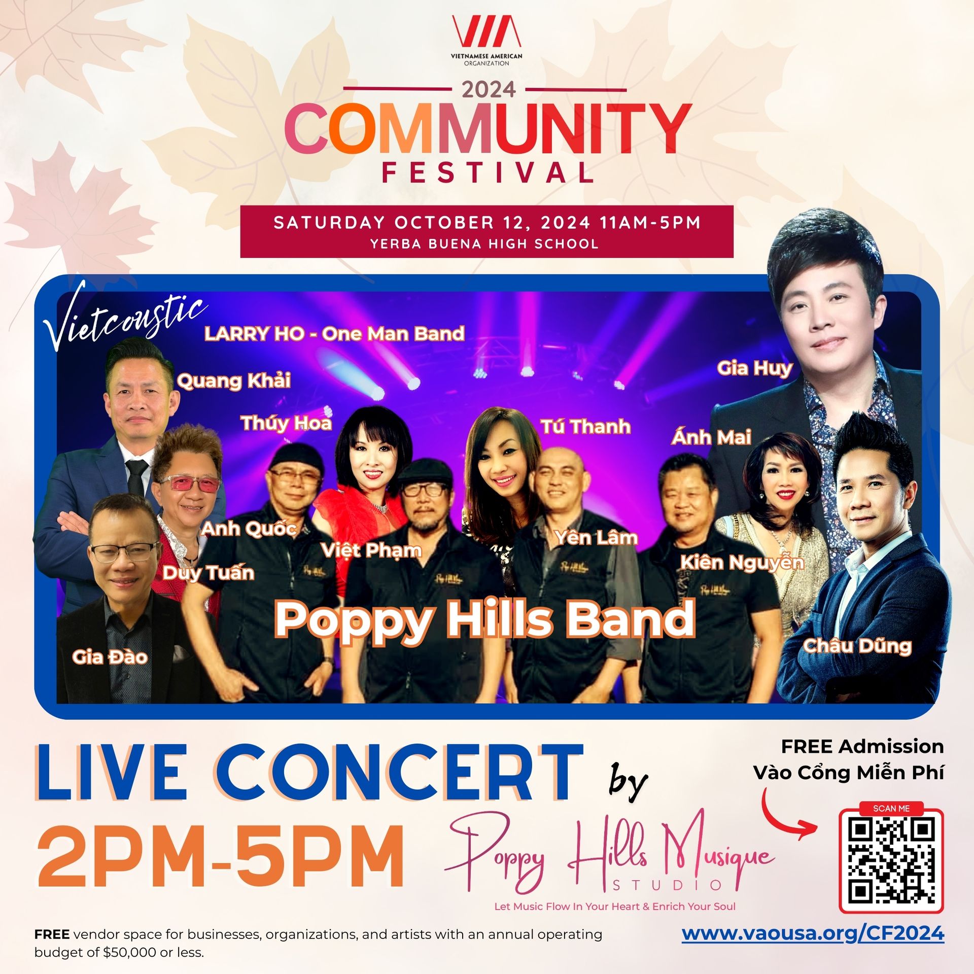 | 2pm-5pm | Live Concert by Poppy Hills Musique | Dancercise & Martial Arts |